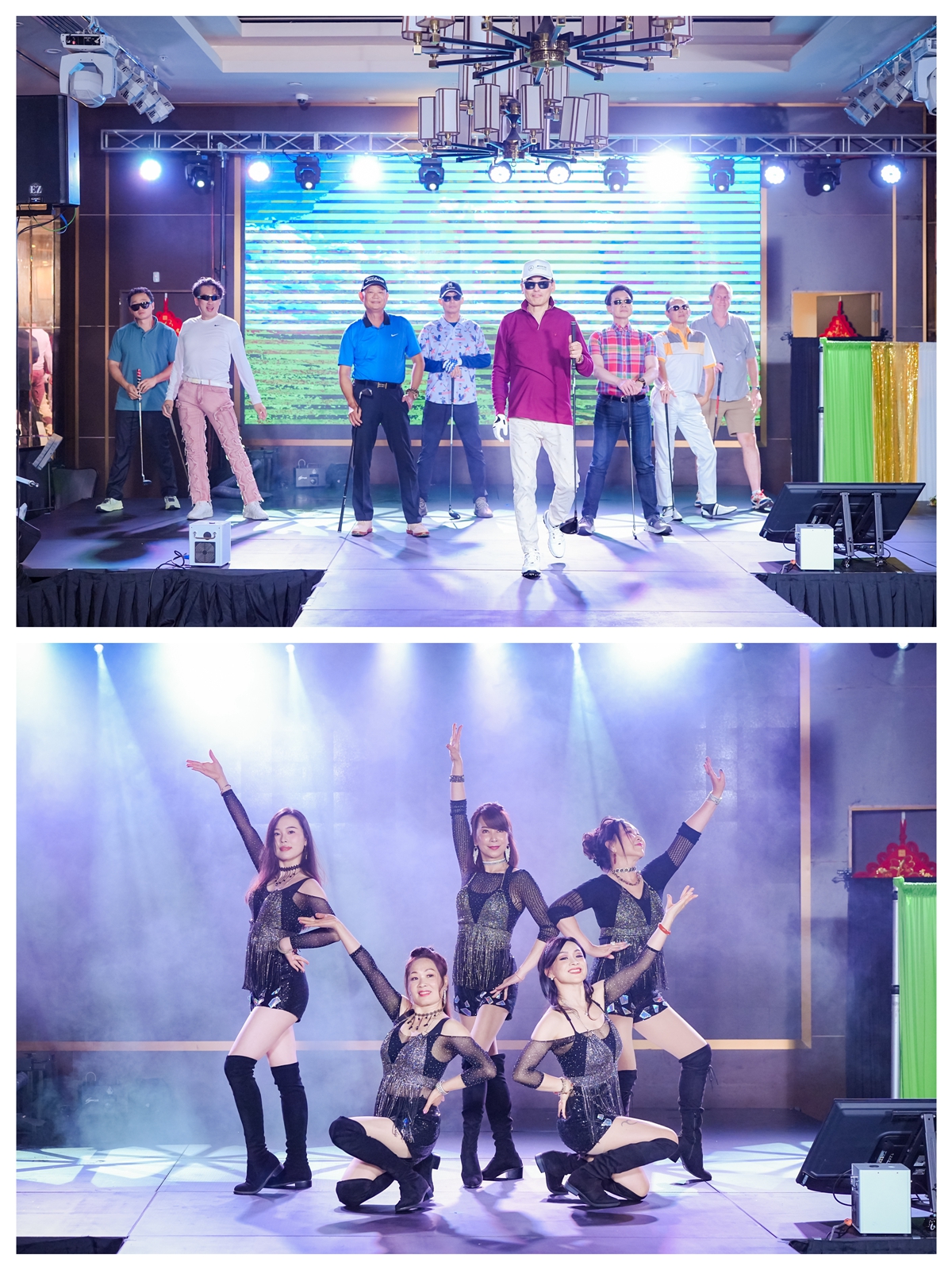 紧接着,舞台氛围从高定雅韵转入动感与活力。绅士高尔夫时尚秀“Golf × Style”由Cici老师指导,数位男士以挺拔的姿态与从容的步伐演绎绅士风范,将运动与时尚完美融合。随后,东方艺术舞蹈学校带来舞蹈《Welcome to Burlesque》,舞者以自信的节奏与灵动的身姿,为现场注入热情与光彩。